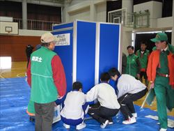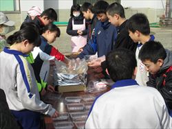 毎年実施している「出城地区自主防災訓練」に1,2年生が23名参加しました。避難者の受付、シートの準備、マンホールトイレの設置、アルファ米の炊き込みご飯作りなど地域の方と一緒に取り組みました。中学生のパワーがとても重要で、頼りになることを実感しました。