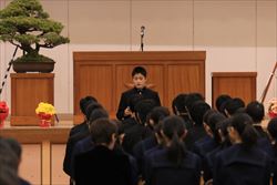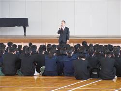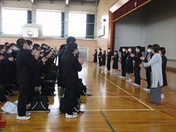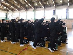明日からの公立高校入試に向けて学年集会が行われました。初めに校長先生から「自分に自信を持って、精一杯持っている力を出し切るように」と激励がありました。3年の先生からのお話しの後、緊張をほぐすリラクゼーション、笑いヨガ。最後にみんなで力強くエールをかけ合いました。健闘を祈っています。