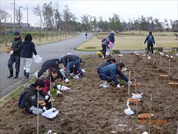 今回で4回目の松の苗木の植樹が松任海浜公園で行われました。あいにくの曇り空でしたが、地域の方や小中学生などが参加し700本の松の苗木を植えました。昨年植えた苗が大きくなっていました。