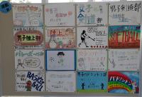 始業式の後、競書会が行われました。各クラスの金賞は、廊下に掲示されています。