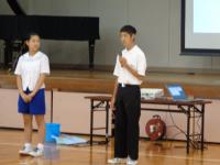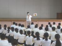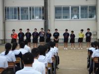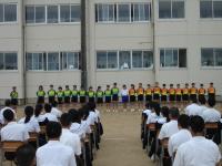 昨日、3年生の復習テストが終わり、今日の朝礼で、鹿野先生から2学期の生活のお話、北本先生から学習のお話がありました。集中して話を聞いている3年生の姿が印象的でした。まだまだ、暑い日が続きますが、暑さに負けずFight!
