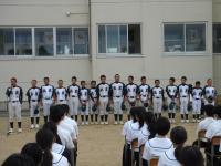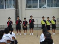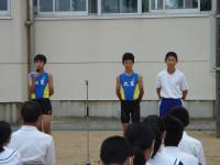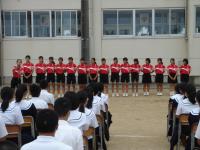 9月24日に新人戦の激励会を行いました。今年はグラウンドで開催しました。各部の挨拶の様子です。