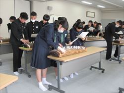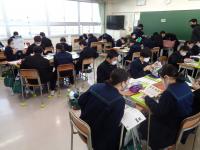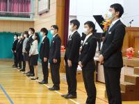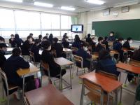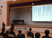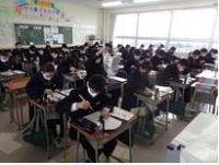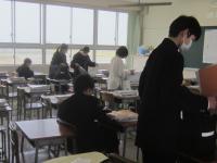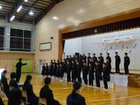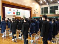 公立入試の1日目に在校生が卒業生に向けての歌を録画しました。最初に直江先生から卒業式の意義のお話があり、礼法指導から木下先生の歌唱指導。そして、在校生の歌を撮影しました。