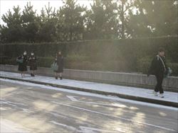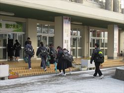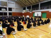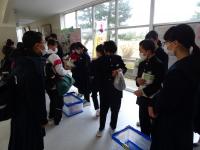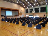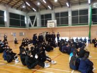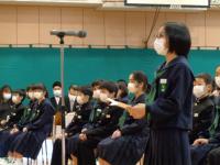 期末テスト後、1,2年生は体育館で、3年生は教室で、冬季の通学についての注意と生徒会からの募金の呼びかけを行いました。木曜日から3日間赤い羽根の募金活動を行います。