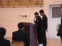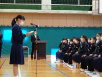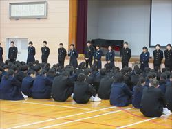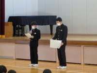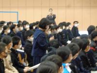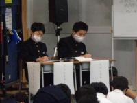 1月15日の朝に2年生は学年朝礼がありました。H代表が中心となって進行をしています。