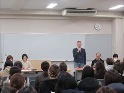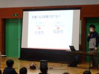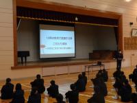 2月2日にいしかわフードバンク・ネット理事の青海万里子さんが、「食品ロスを減らして、家で使わない食品を地域の困っている人に届けよう!」と題し講演をしていただきました。食品ロスについての質問が生徒からもあり、とても勉強になった時間でした。この後、生徒会の呼びかけで、ご家庭で使わない食品を集める予定です。ご協力をお願いします。