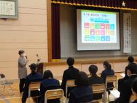 1月の生活目標の紹介やレクリエーション、新谷先生から「3学期を迎えて」のお話がありました。
