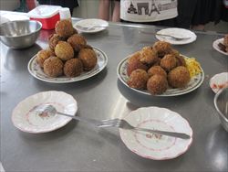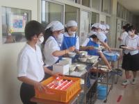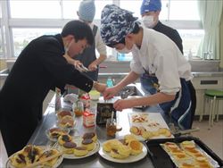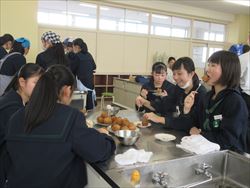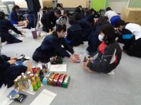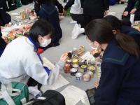 先日までに集めた食品を青海さんの指導の下、ボランティアの生徒達が手分けをして