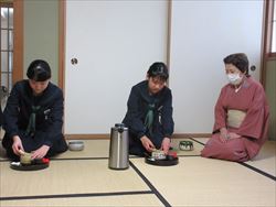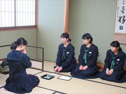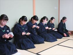 参加した先生や生徒は、おいしいお抹茶とお菓子をいただき、なごやかなひとときを楽しみました。