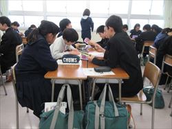 自分たちが調べた高等学校について他の生徒に説明する時間を設けました。