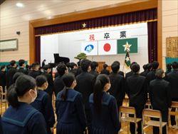 今日は卒業式でした。コロナウイルス感染症対策のため、在校生や来賓の出席がなく、縮小した内容となりました。卒業式の練習も十分にできませんでしたが、生徒一人ひとりが緊張感を持って式に臨み、すばらしい卒業式となりました。晴れやかな笑顔で巣立ちました。保護者の皆様、これまでご協力いただきありがとうございました。