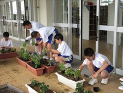 ボランティア部がプランターの花植を