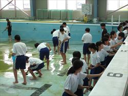 悪臭漂う中、一生懸命取り組んでくれたおかげで、とてもきれいになりました。水泳の授業が待ち遠しいですね。