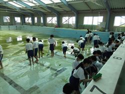 体育の時間に丸2日かけて、プール掃除を行いました。