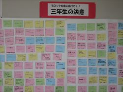 先月末には白山野々市陸上競技大会が行われ、女子優勝、総合2位を勝ち取り、よいスタートを切りました。また、来週13日には白山野々市水泳大会、15日から加賀地区ブロック大会が始まります。3年生一人一人が大会やコンクールに向けて決意表明をしました。そして1年生のホーム代表者会が3年生に、心強い応援メッセージを送りました。