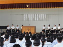 令和元年度後期生徒会役員選挙がありました。立会演説会では、それぞれの候補者が選挙公約を自分の言葉でしっかりと述べました。「挨拶をよりしっかりできる学校にしたい」「時間を守る」「ノーチャイムデーの実施」「掃除の取り組み方をよりよくする」など北星中をよりよくしたいという思いが伝わってきました。