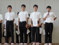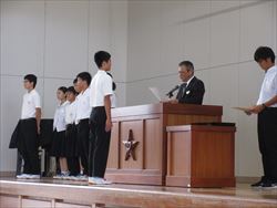 後期生徒会新役員の認証式が行われました。新生徒会長、そして現生徒会長の挨拶のあと役員の引き継ぎ式が行われました。全校生徒で生徒会を盛り上げていきましょう!