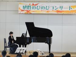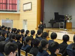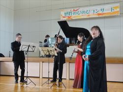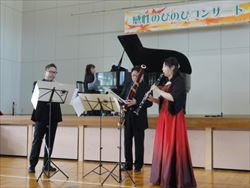 5限目に感性のびのびコンサートを行いました。県内外で活躍されている音楽家・・松永彩子さん(クラリネット)、柳浦慎史さん(ファゴット)、田中宏さん(オーボエ)、山崎真知子さん(ピアノ)、そして本校の音楽科教員の5名で8曲を演奏していただきました。プロの生の演奏はたいへんすばらしく生徒も演奏に聞き入っていました。