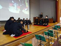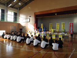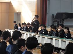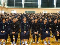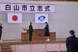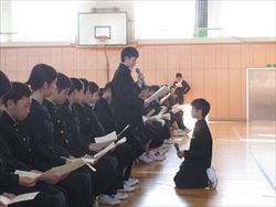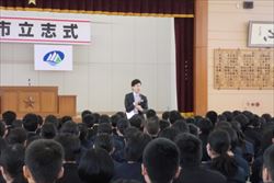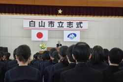 立志式が行われました。全員で白山市市民憲章を唱和したあと、来賓の方からお祝いの言葉を頂きました。また、生徒代表が立志の言葉を力強く述べました。記念講演としてMRO北陸放送キャスターの松村玲郎さんが、「心の声を大事にしよう」と題して記念講演をされました。生徒は、「立志式を節目として自覚を持って過ごしたい」「自分の決めたことを相手のせいにしないということが心に残った」などと感想を述べていました。