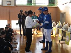 今日はJA松任さん主催の「おにぎりの日」のイベントがありました。部活動や勉強に頑張る生徒のために『ひゃくまん穀』で作ったおにぎりを持ってきて下さいました。各クラスの代表は石川ミリオンスターズの近藤投手、金山内野手からおにぎりを受け取り、教室でおいしくいただきました。ありがとうございました。