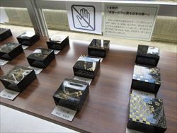 1年生【絵文字・デッサン】、2年生【想像上の生物】、3年生【沈金】の作品を展示してあります。ぜひ足を運んでみてください。