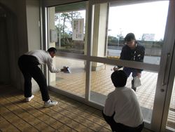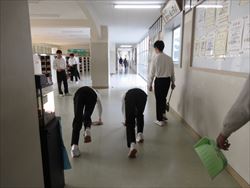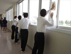 2学期最後の大そうじを行いました。日頃できない窓ふきや廊下、教室のすみずみまで丁寧に掃除しました。生徒は30分間、一生懸命取組みました。先日地域の方からいただいた雑巾がたいへん役に立ちました。ありがとうございました。