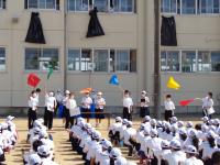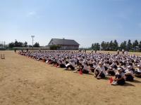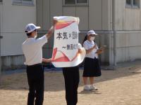 本日6限目に、グラウンドで、運動会のブロック分け抽選を行いました。運動会のスローガンは、本気×団結=笑顔~無限の方程式~と発表されました。各ブロックの3年生を中心に、これから準備を進めていって欲しいと思います。