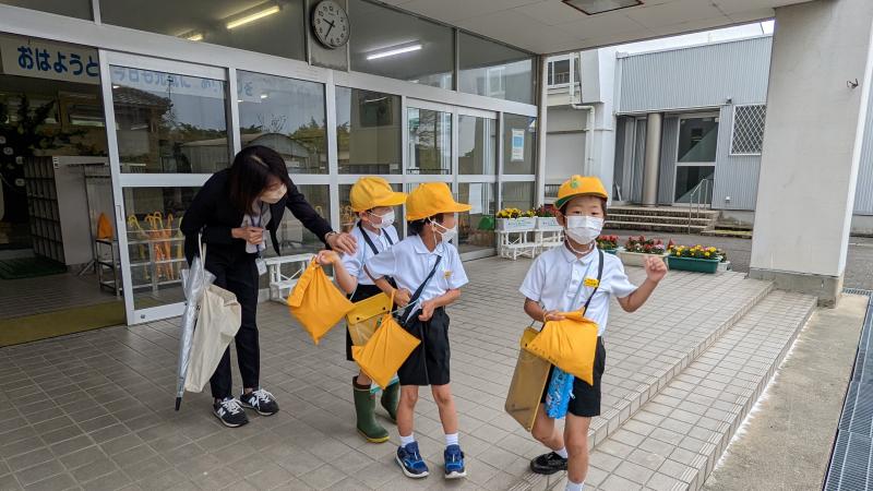 2年生が、 生活科の学習で 「まちたんけん」 に行きました。3チームに分かれて、 徒歩で 見学先に向かいました。 どのチームもしっか りお話を聞き、質問できたのではないかと思 います。 校区の良さをたくさん調べて、もっと もっと宝達小学校をすきになってほしいです。