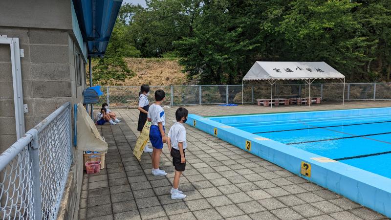 いよいよ月曜日にプール開きがあります。運動委員会の子どもたちが、昼休み返上で式の練習をしています。声が小さいと、担当の先生方から指導の声が飛びます。月曜日は、練習の成果を発揮してくれるでしょう。