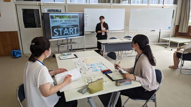 先生方も授業改善、指導力向上のための研修を行っています。本日は外部の講師の先生をお招きし、6年の越後先生の研究授業を行いました。