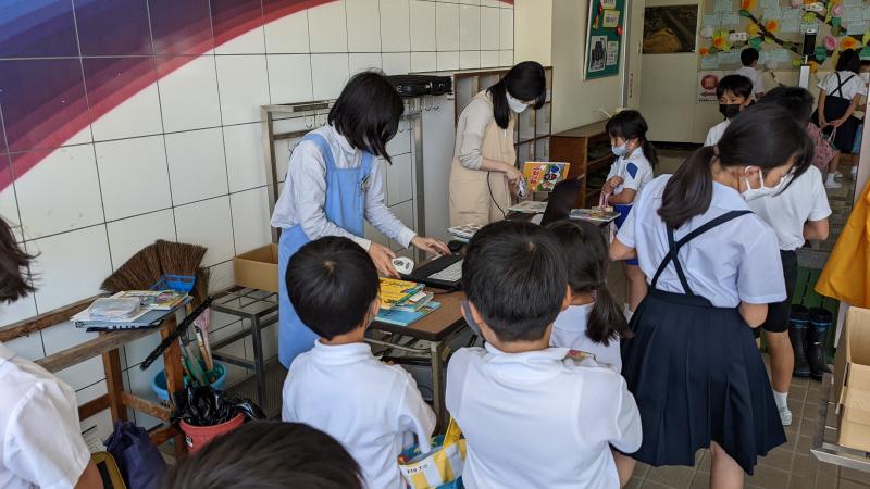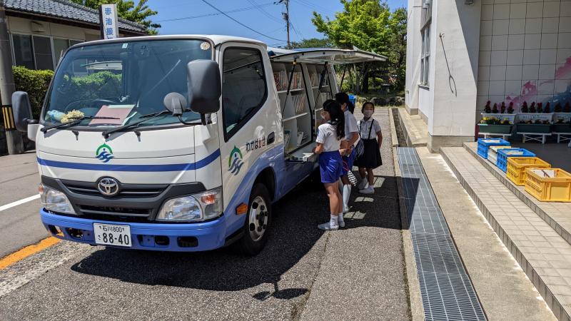 今日はわかば号(Ⅱ世)の来校日でした。今日もたくさんの子どもたちが借りに来ました。子どもたちは、わかば号が来るのを楽しみにしています。