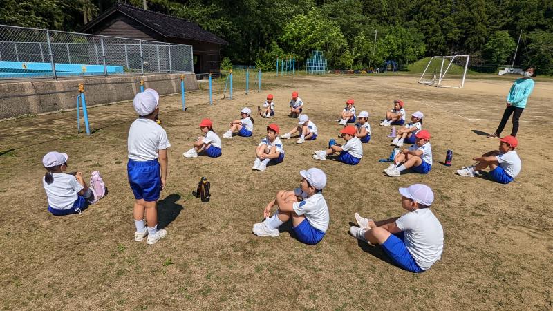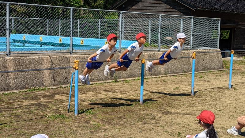 2・3年生の体育の時間です。友達の鉄棒の演技の良いところについて話し合っています。