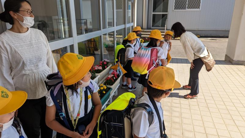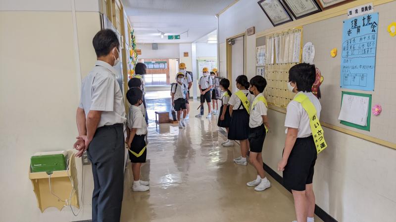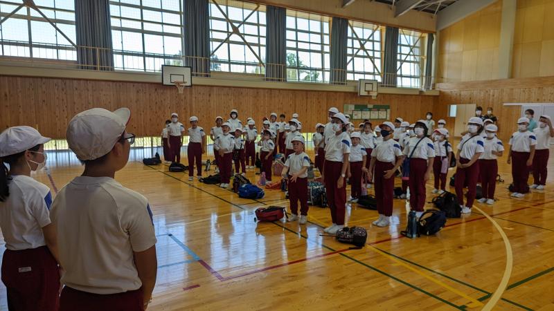昨日夕方と本日朝の2回のクマの目撃情報を受け、大事を取って、集団下校としました。1・2年生は15時、3〜6年生は16時に同じ方面の児童がいっしょに下校しました。低学年や人数が少ない地区には教員が付き添いました。