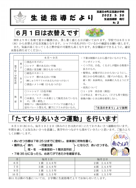 5月30日 生徒指導だより(衣替え)を掲載しました✡✡