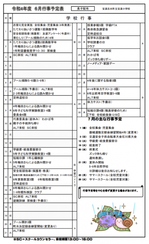 明日、衣替え完全実施となり、全員が夏服での登下校となります。また、熱中症防止のため、登下校時のマスク着用については見直しを行ったところです。一方、新型コロナウイルス感染症については未だ収束には至っていない状況です。マスク着用の見直しは熱中症対策の観点からですので、各家庭におかれましては、今後とも新型コロナウイルス感染症拡大防止にご協力をお願いいたします。感染リスクを低下させるマスクの着用(不織布、正しいサイズや装着法)、不要不急の外出の自粛や三密回避、うがい・手洗い・手指消毒等の対策を引き続きお願いいたします。また、登校前の検温についても、各家庭で行っていただき、発熱ほか各種症状の有無についてもご確認願います。