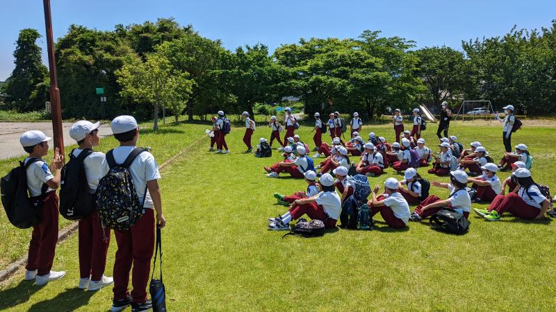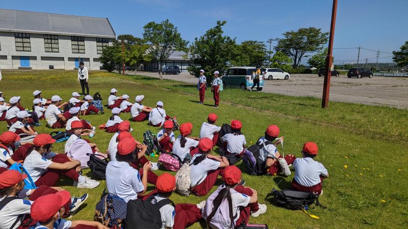 延期になっていた春の遠足が、ようやく今日行われました。雨の心配はありませんでしたが、夏のように暑い日になりました。(おそらく気温は30℃くらいあったのでは?)4つの縦割班毎に6年生がリーダーとなって、産業センター(ネクサス)まで歩きました。到着後は、記念撮影やゲームなどで楽しみました。最後に、1つだけ持参が許可されたオヤツを食べ、再び班毎で宝達小学校に帰りました。2時間ほどの活動でしたが、学校に着いた子どもたちの表情はとても満足感に溢れていました。
