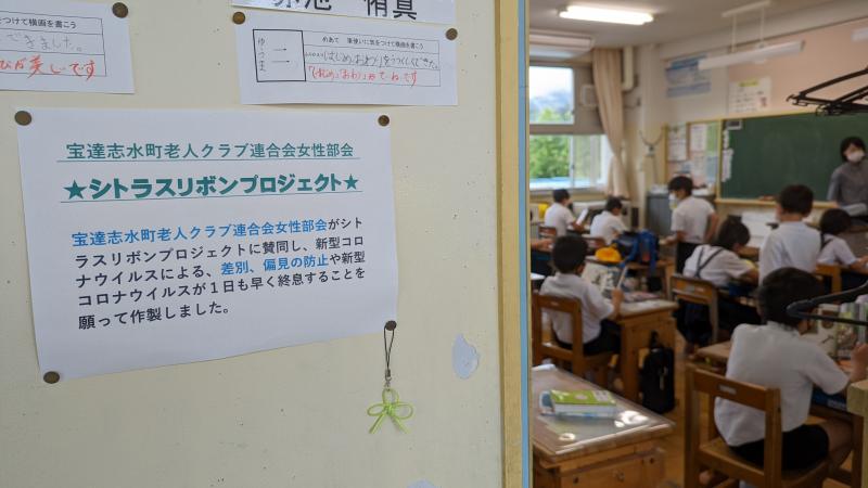 シトラスリボンプロジェクトで頂いたリボンの掲示が完了しました。いじめや差別のない学校を目指します。