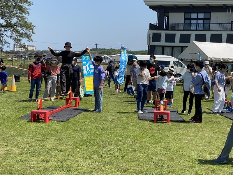 宝達志水多目的広場で、スラックラインの体験会がありました。バランスをとるのが難しいですが、体幹が鍛えられるスポーツです。