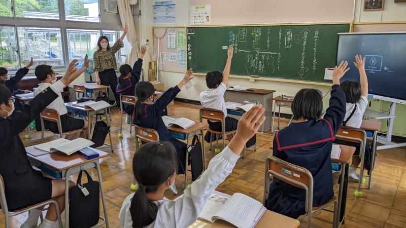 話しても聞き手も相手を意識した話し合いを心がけています。6年生は最上級生らしく、下級生のお手本となる授業態度を見ることができます。この日は道徳の時間に「自分の夢を叶えるためには?」をテーマに、自分の長所を伸ばすことについて考えました。また、MROラジオで放送される予定の作文(「ぼくの夢、わたしの未来」)と関連させながら考えることができました。