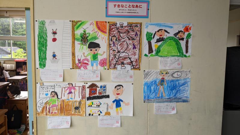 廊下の掲示板に少しずつ子どもたちの作品が増えてきました。どれも力作ぞろいです。