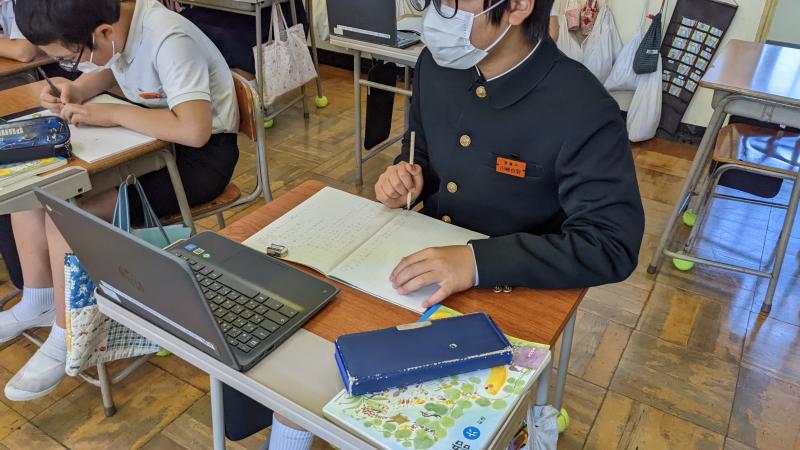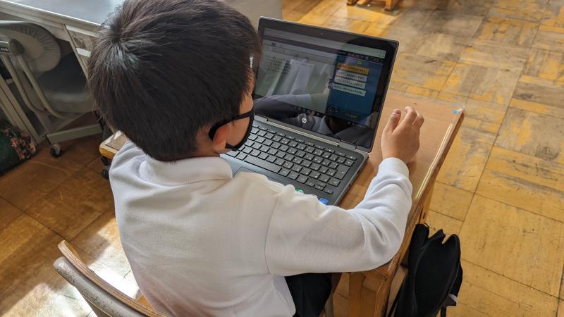 テストが終わったら、Chromebookでドリル問題に取り組みます。基礎基本の定着と端末操作の習熟が目的です。