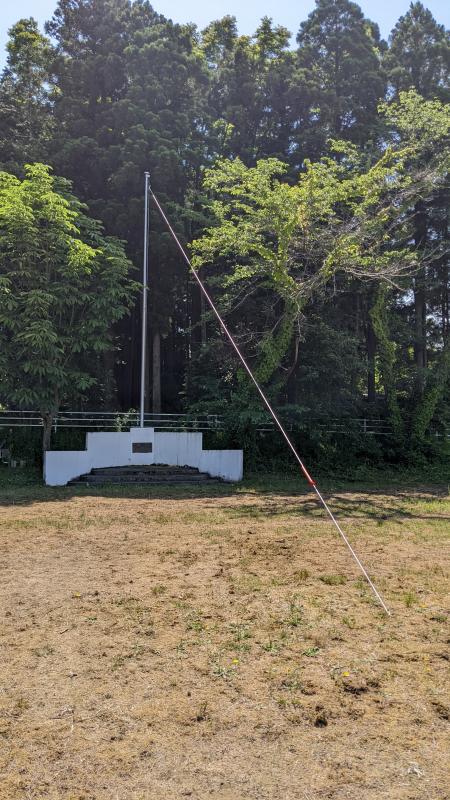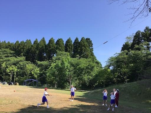5年担任新瀬先生が、「投力強化マシン」を設置してくださいました。ロープにリレーバトンが通してあり、そのバトンを掲揚塔のてっぺんめがけて投げ上げます。ロープの所々にテープでマーキングもしてあります。6月に体力テストもありますので、ゲーム感覚で楽しみながら取り組むことで、投力向上に繋げたいと思います。
