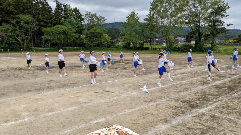 運動会が今週末に迫ってきました。6年生が下級生に応援練習の指導をしています。とても頼もしい6年生です。下級生もそれに答えようと一所懸命練習しています。