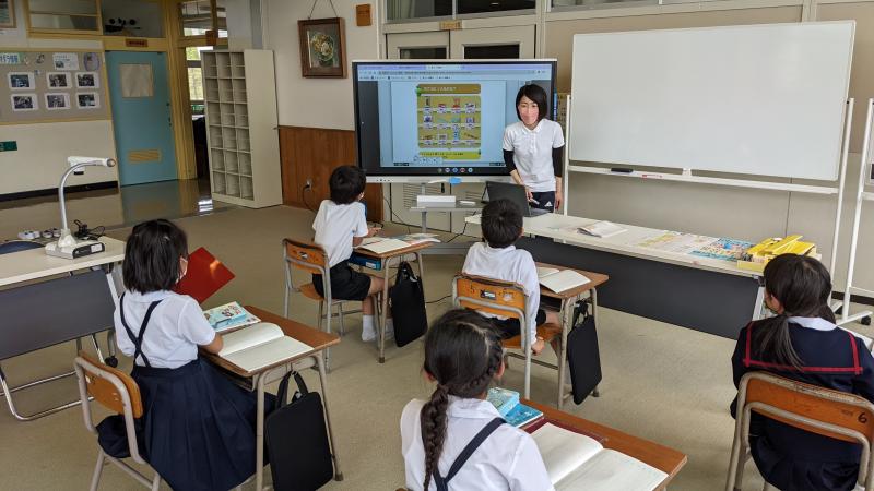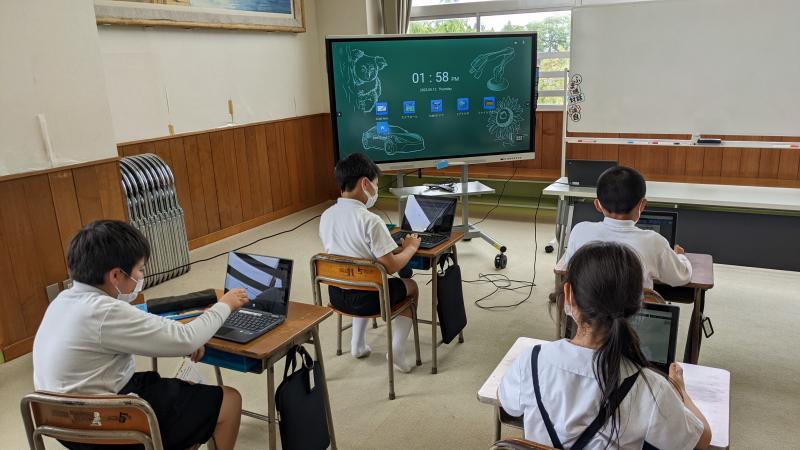本校は電子黒板が3台入っています。これまでは、4〜6年生教室に1台ずつ配置して使ってきました。しかし、今年度から複式学級となった2・3年生も使いたいということで、4・5年生の電子黒板をマルチルームに配置することにしました。これで、1年生を除く2〜6年生が電子黒板を使った授業を受けることになります。