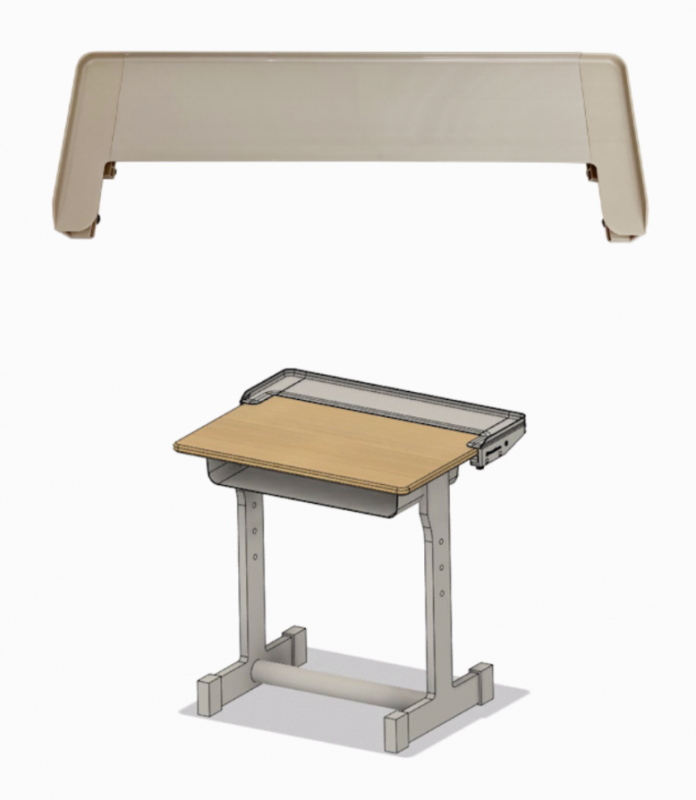 Chromebook(一人一台端末)を使うようになって、子どもたちの机が狭くなっています。そこで机を広く使うための器具を天板に装着することにしました。Chromebookだけでなく、教科書や文房具の落下も防ぐことができます。4〜6年生の机から始めます。