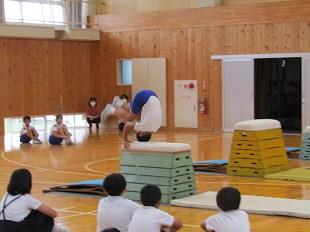 10月1日の児童集会で,4年生が跳び箱の発表をしました。
