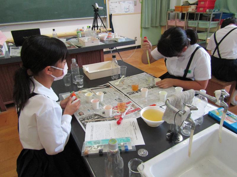 2種類の薬品を使って、ゲル化の不思議を体験しました。