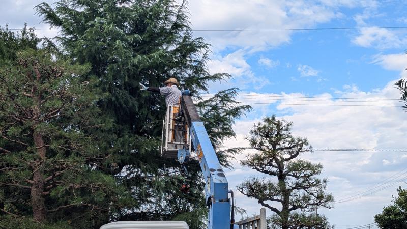 前庭の樹木がかなり伸びていましたので、剪定していただきました。こちらもおかげさまで大変スッキリし、学校に向かう車の確認がしやすくなりました。