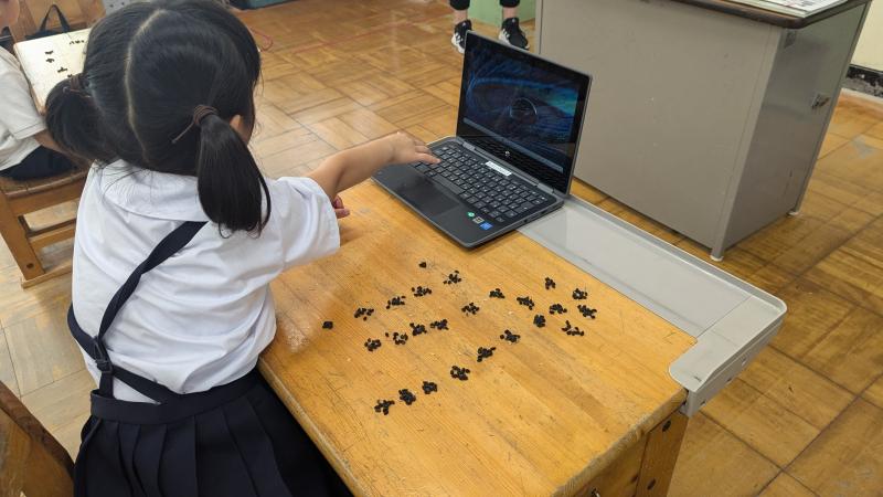 1年生が育てた「ホウセンカ」の種が収穫できましたので、それを使って数の勉強をしていました。