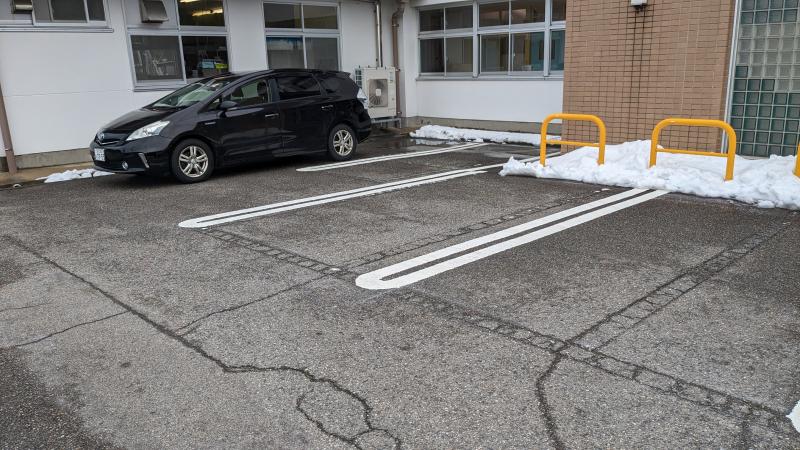職員・来客玄関横の駐車場のラインを引き直していただきました。間隔が広くなり、高齢の方や妊婦の方などでも停めやすく、乗り降りしやすくなりました。駐車台数は10台から8台に減りますが、何卒ご理解ご協力をお願いいたします。